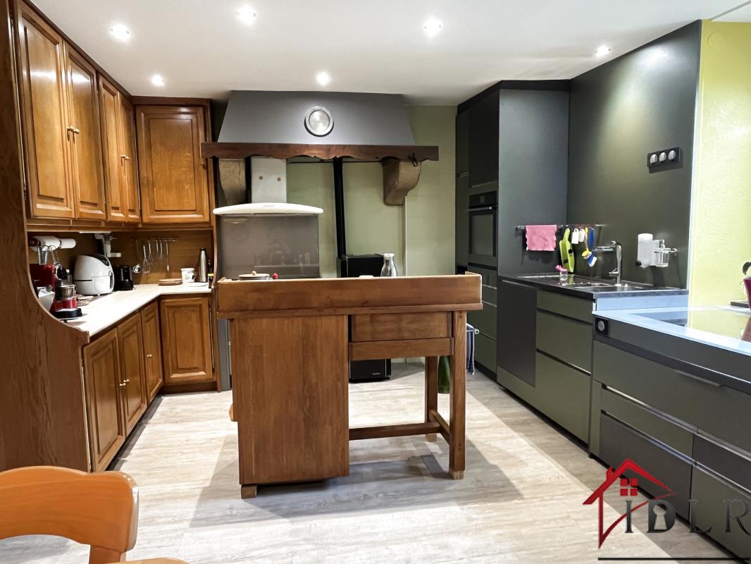 La cuisine s'ouvre sur une véranda, véritable écrin de lumière, offrant un panorama apaisant sur le parc arboré et les lisières boisées. Le salon, raffiné et convivial, invite à des instants de partage dans un cadre harmonieux.