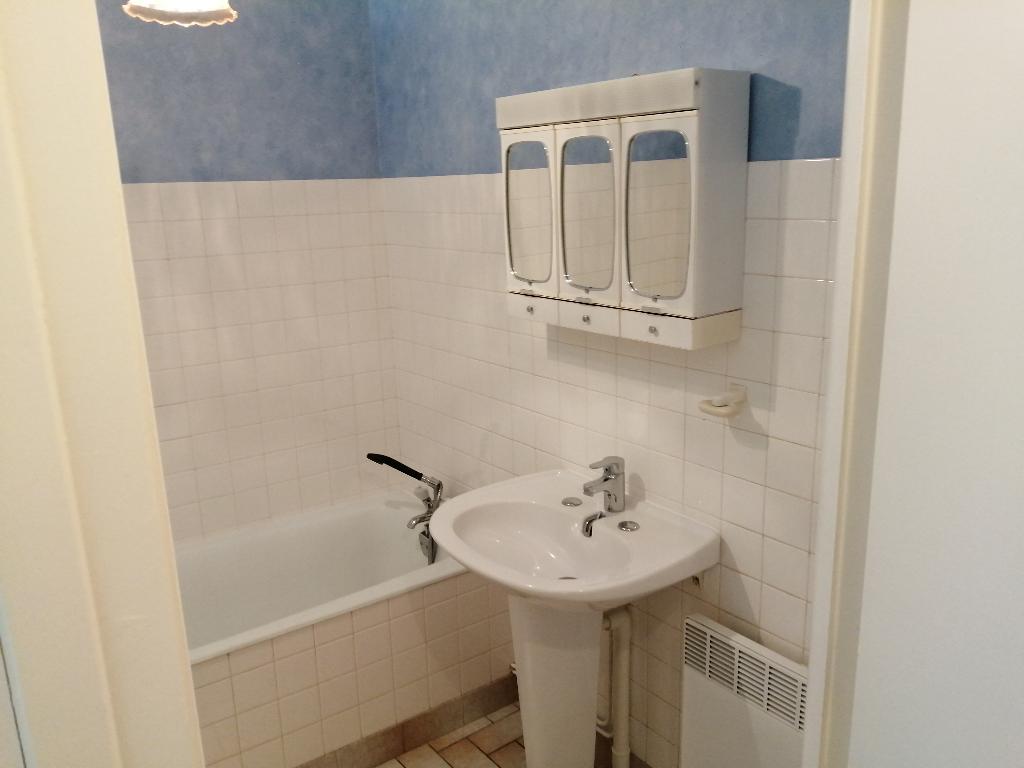 Appartement T2 en rez-de-chaussée composé d'une pièce à vivre, une chambre, une salle de bain avec wc.