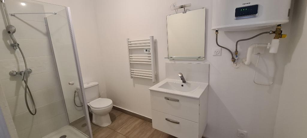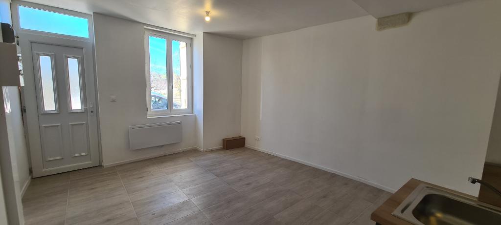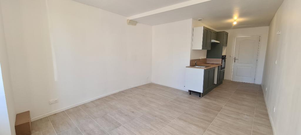 Appartement T2 en rez-de-chaussée comprenant une pièce à vivre avec cuisine ouverte équipée (four électrique, une plaque vitro 2 feux, une hotte), une chambre, une salle d'eau avec wc.