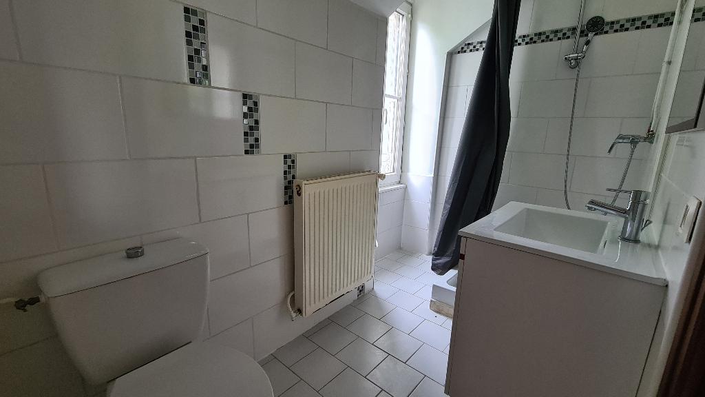 A louer, T2 au 2e étage d'un immeuble, proche de la gare comprenant une entrée desservant une cuisine, une pièce à vivre, une chambre, une salle d'eau avec wc.