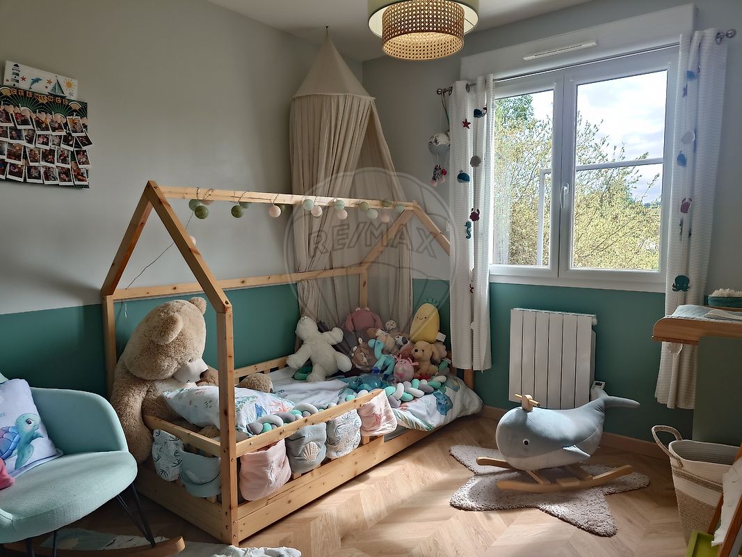 A l'étage : grande chambre parentale avec salle de bains et wc séparé.