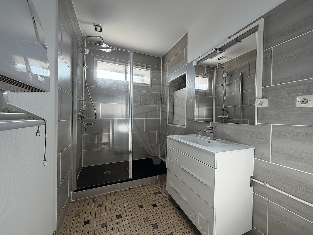 Elle se compose d'une entrée avec placard mural, d'un salon-séjour lumineux avec porte-fenêtre donnant de plain-pied sur la terrasse, d'une cuisine, de deux chambres dont une avec placard mural, d'une salle d'eau récente et d'un palier pouvant servir de bureau.