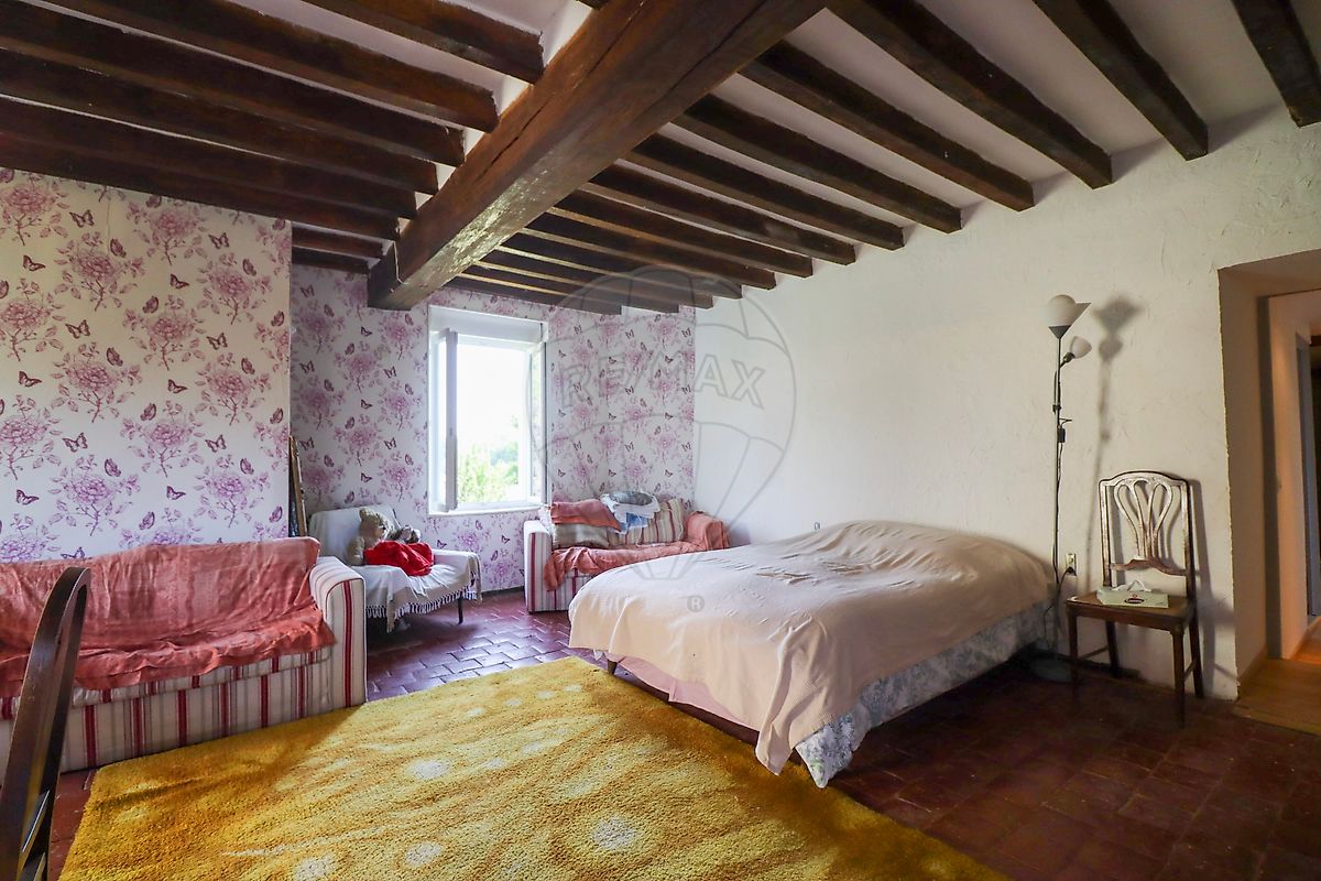A l'étage : entrée indépendante par l'extérieur offrant une pièce de vie, (ou chambre), un couloir desservant trois chambres avec mezzanine et point d'eau chacune, ainsi qu'un wc indépendant. Combles aménagés au dessus.