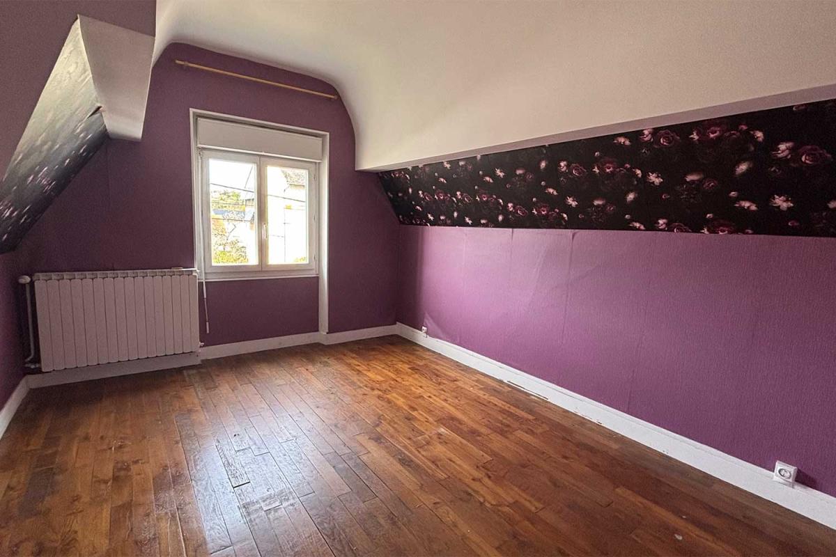 CHALLUY – 133 avenue du Stand – Maison mitoyenne de 89.29 m² avec jardin de 152 m².Description :Maison mitoyenne de type 5 disposant au rez-de-chaussée d'une entrée avec placard, un séjour, une cuisine, une chambre et un wc. A l'étage, vous disposez d'une salle de bain avec wc, ainsi que trois chambres.