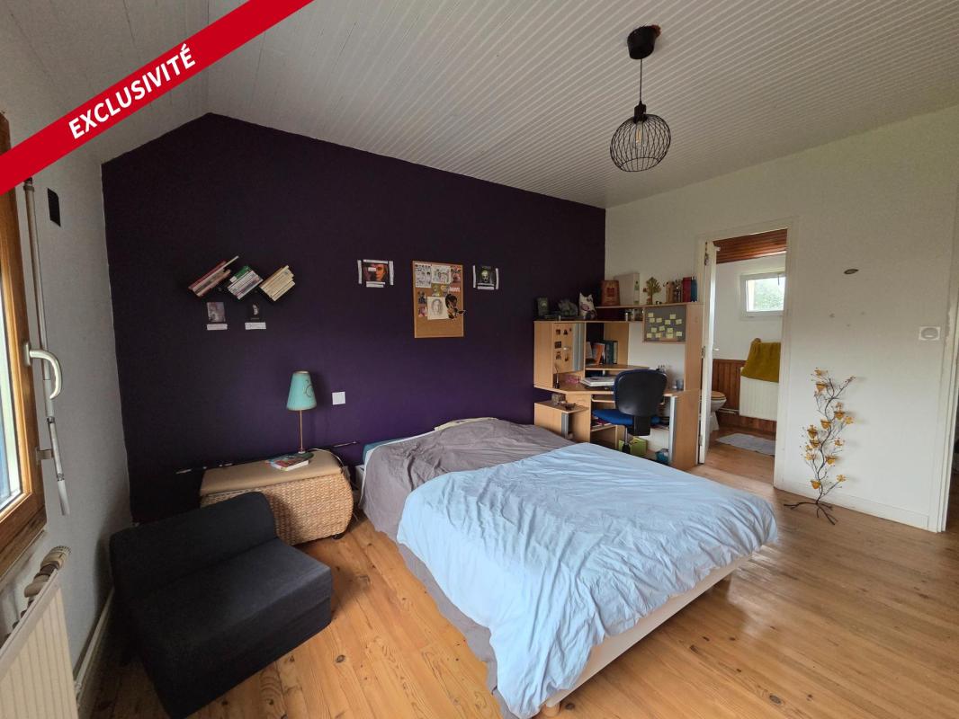 A l'étage: Trois chambres dont une avec salle d'eau privative, un bureau et une salle de bain avec WC.