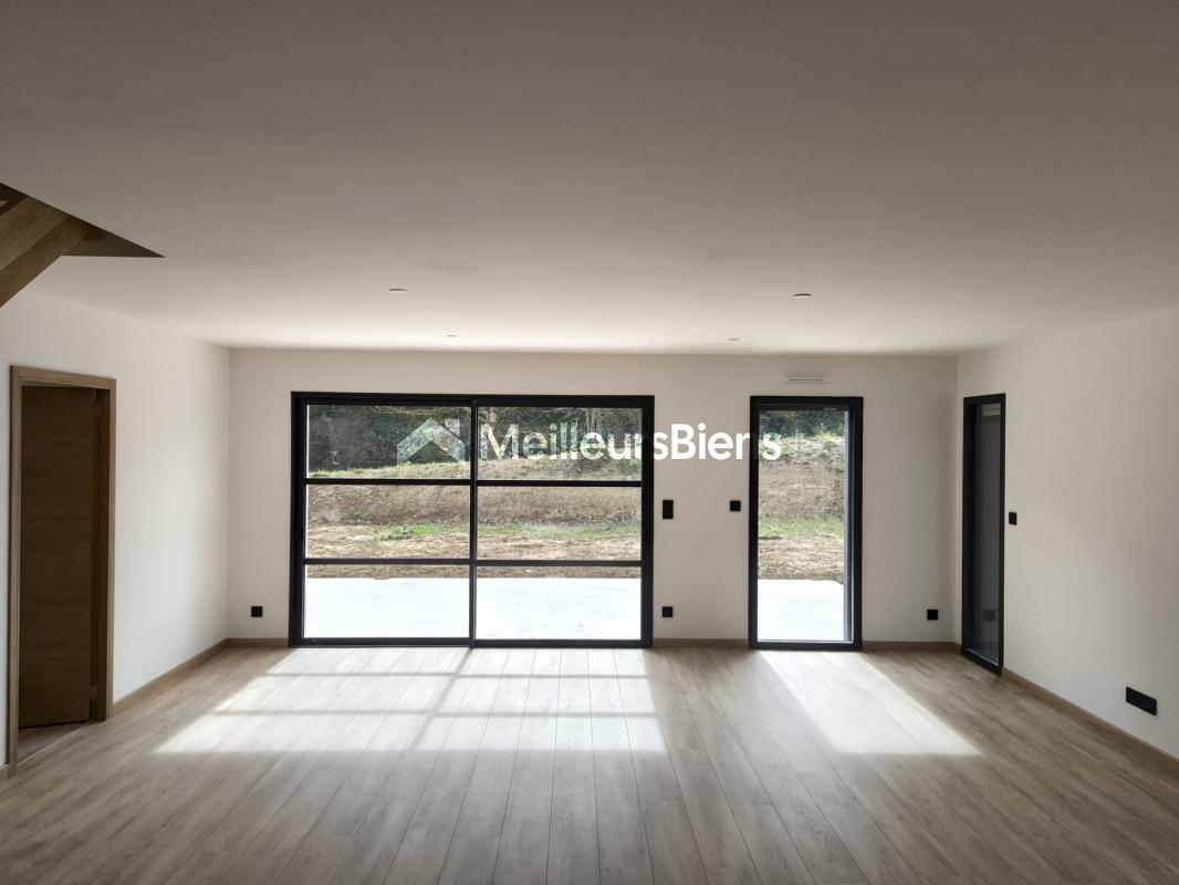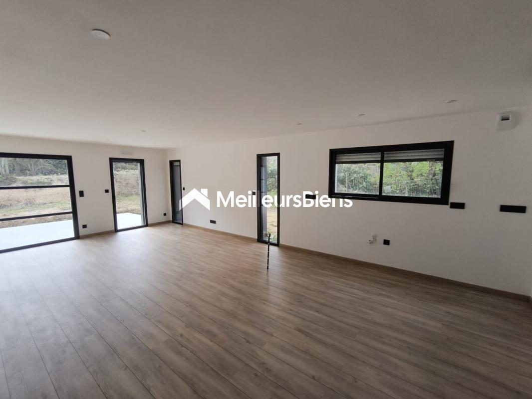 Au rdc, grande pièce de vie de 50m2 avec cuisine ouverte et placard d'entrée, une suite parentale avec dressing et salle d'eau privative, wc, cellier et garage de 22m2.