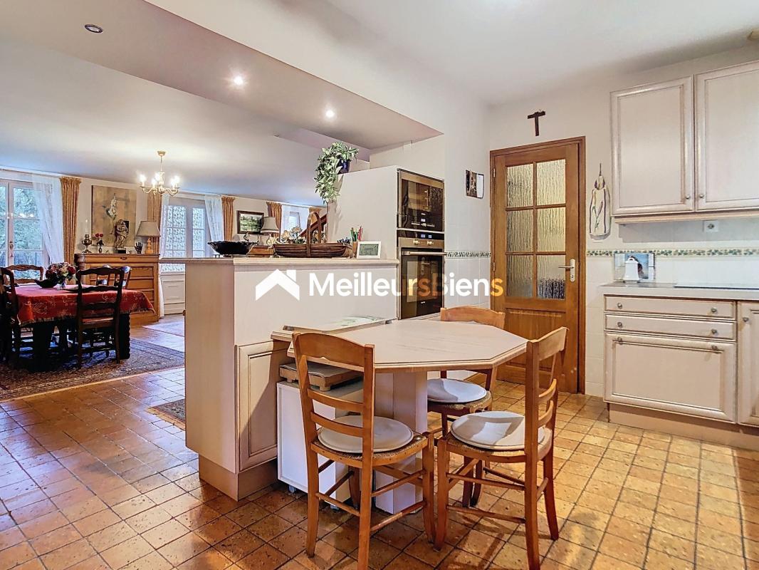 Au rez-de-chaussée, intégralement chauffé par le sol, la maison propose une vaste pièce de vie lumineuse de presque 54m², équipée d'une cheminée avec insert, mais également une cuisine ouverte, entièrement aménagée et équipée. Ce niveau comprend en outre une buanderie, une cave à vin, des toilettes séparées et, surtout, une belle suite parentale de plain-pied. Celle-ci se compose d'une chambre de plus de 16m² et d'une grande salle d'eau privative de 14m² avec un dressing et des toilettes. Depuis la cuisine, nous accédons directement à une très belle véranda chauffée de 25m², parfaite pour profiter du jardin tout au long de l'année.