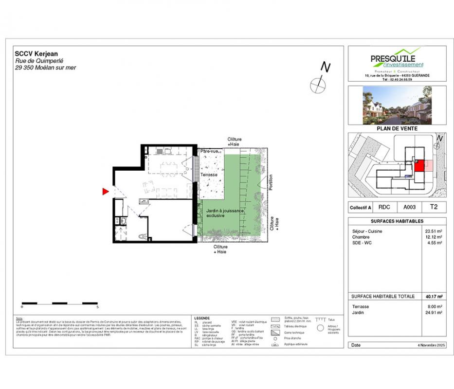 L'appartement n°A003 fait partie du programme immobilier "HAMEAU DE KERJEAN", situé dans la ville de Moëlan-sur-Mer.