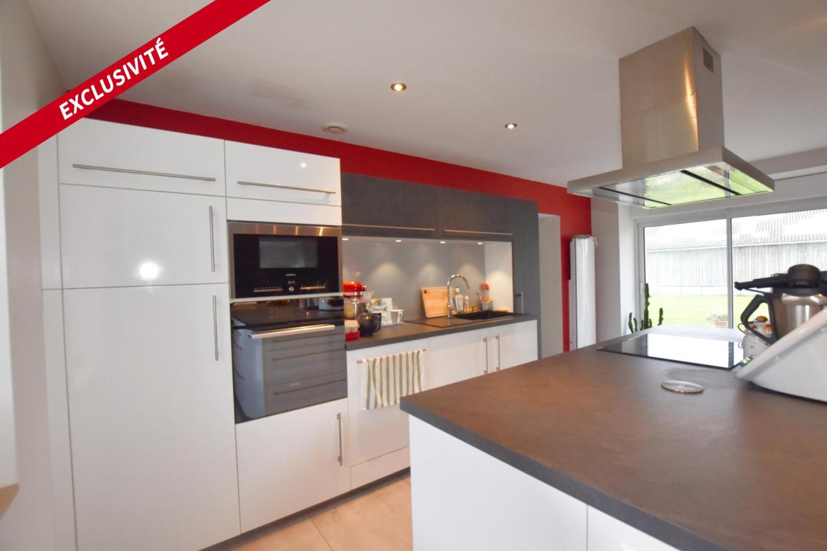 La maison vous offre une vie de plain-pied avec au rez-de-chaussée une vaste pièce de vie lumineuse de 64 m², comprenant un salon-séjour chaleureux équipé d'un poêle à granulés programmable (2020), ainsi qu'une cuisine aménagée et équipée avec îlot central. L'ensemble s'ouvre sur une terrasse exposée ouest, idéale pour les moments de convivialité.