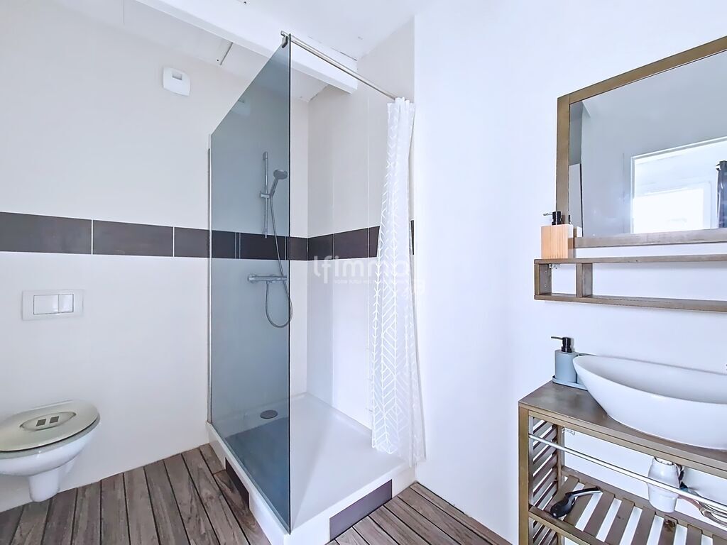 1er étage : chambre d'environ 15 m² exposée sud, salle d'eau attenante avec WC suspendu.