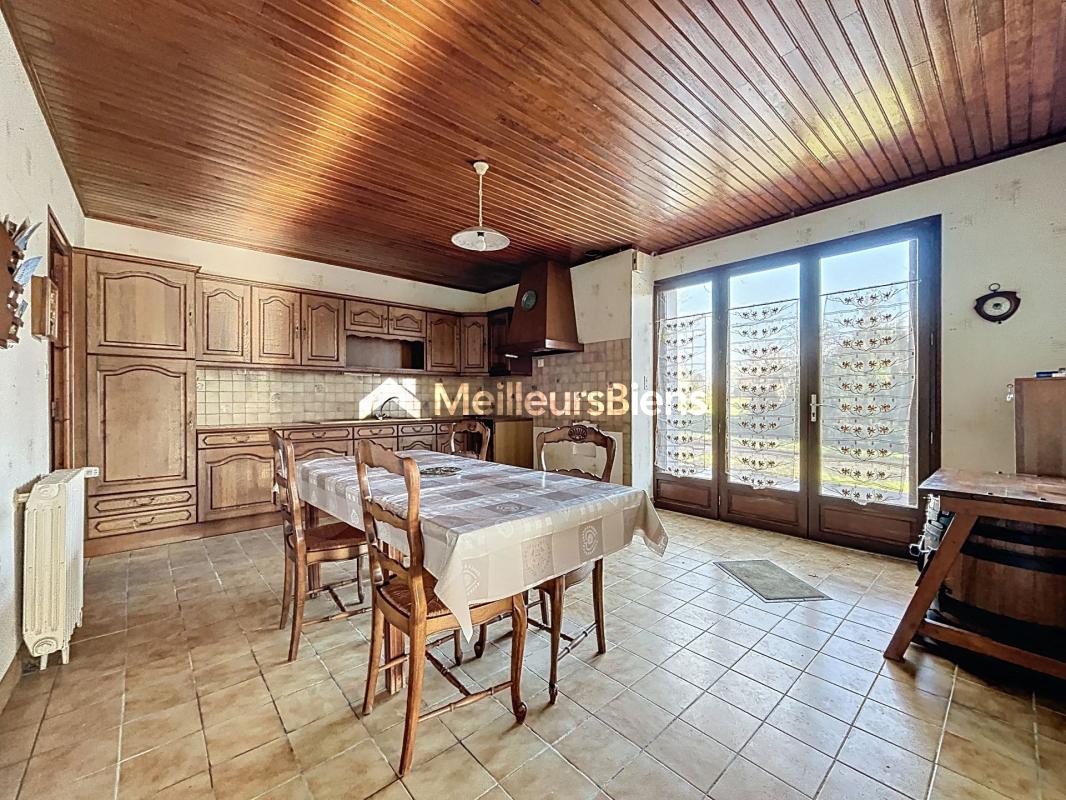 L'entrée donne sur une cuisine fermée et aménagée, à suivre une pièce de vie, une chambre, une salle d'eau et un toilette indépendant. Au rez-de-chaussée toujours, se trouve une arrière cuisine et une chaufferie.