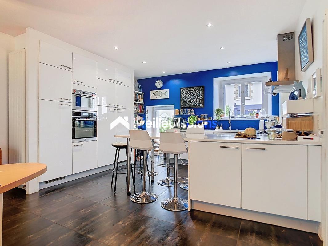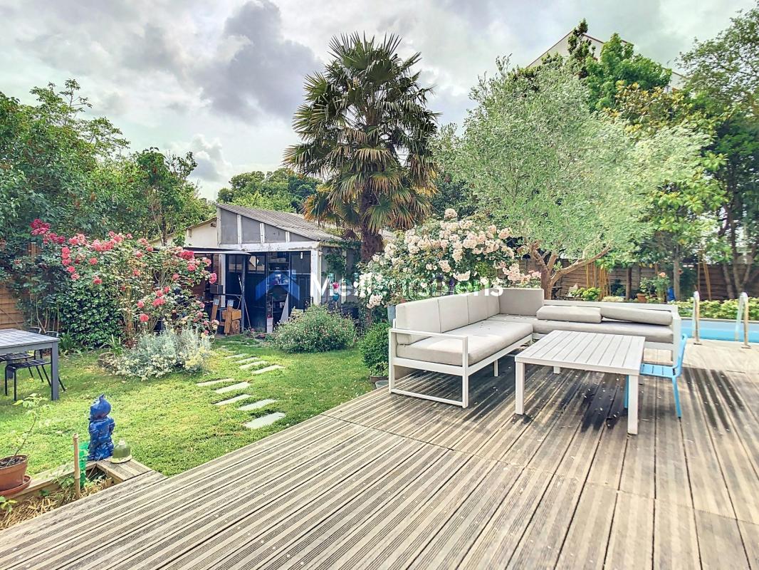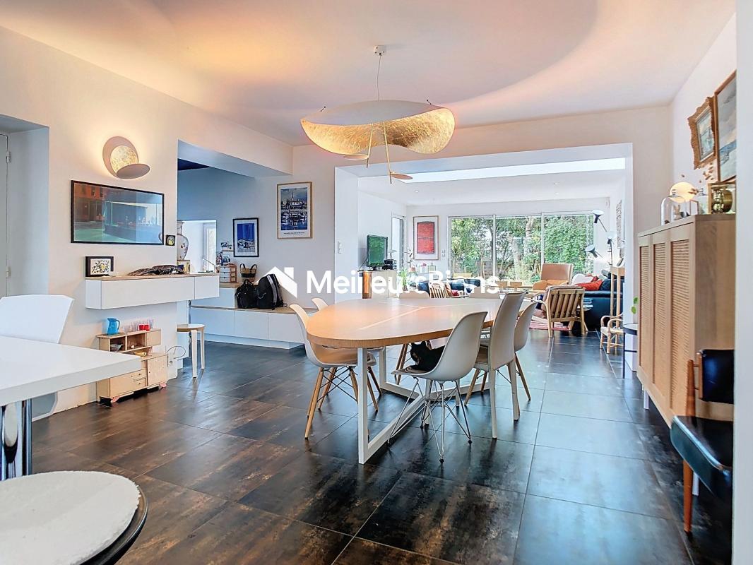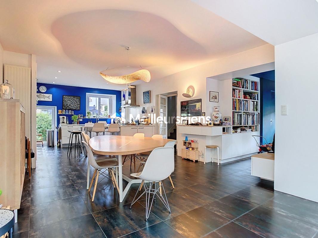 À l'intérieur, la maison séduit par la qualité de sa rénovation et ses volumes généreux. Le rez-de-chaussée s'ouvre sur une très belle pièce de vie de 70 m², baignée de lumière grâce à une large baie vitrée orientée plein sud, qui prolonge naturellement l'espace vers une terrasse en bois spacieuse. La cuisine ouverte, moderne et élégante, se fond harmonieusement dans l'ensemble. Un espace bureau, ouvert sur le salon, permet de travailler confortablement depuis chez soi sans être isolé du cœur de la maison.