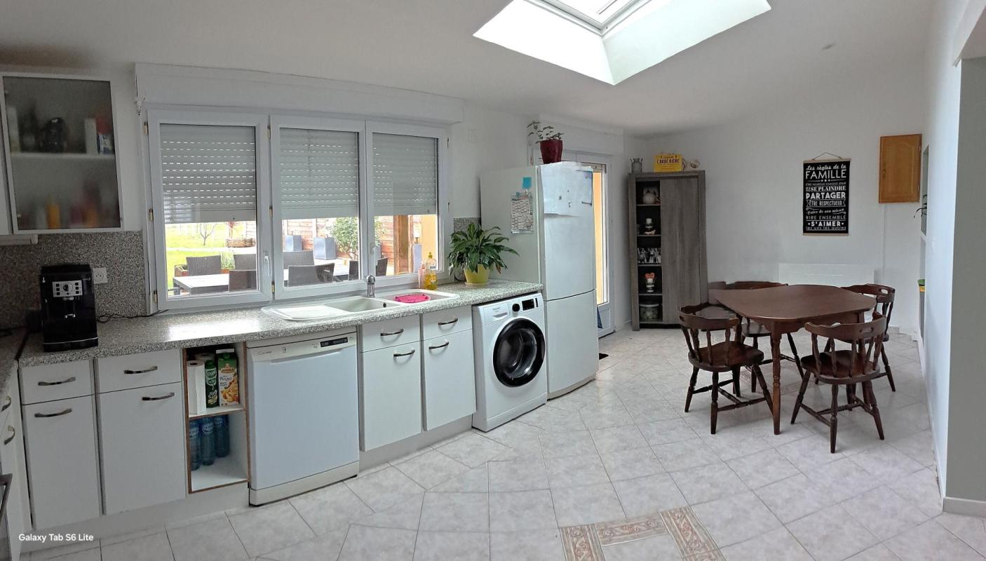 La cuisine s'ouvre sur une terrasse offrant une vue dégagée sur le jardin paysager, sans aucun vis-à-vis.