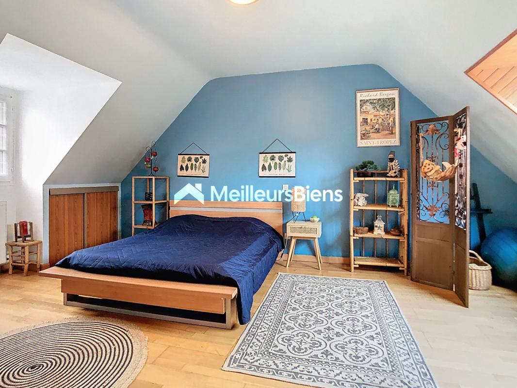 À l'étage, la maison dispose de trois chambres dont une très grande, d'une salle de bain équipée d'une baignoire et de toilettes indépendantes.