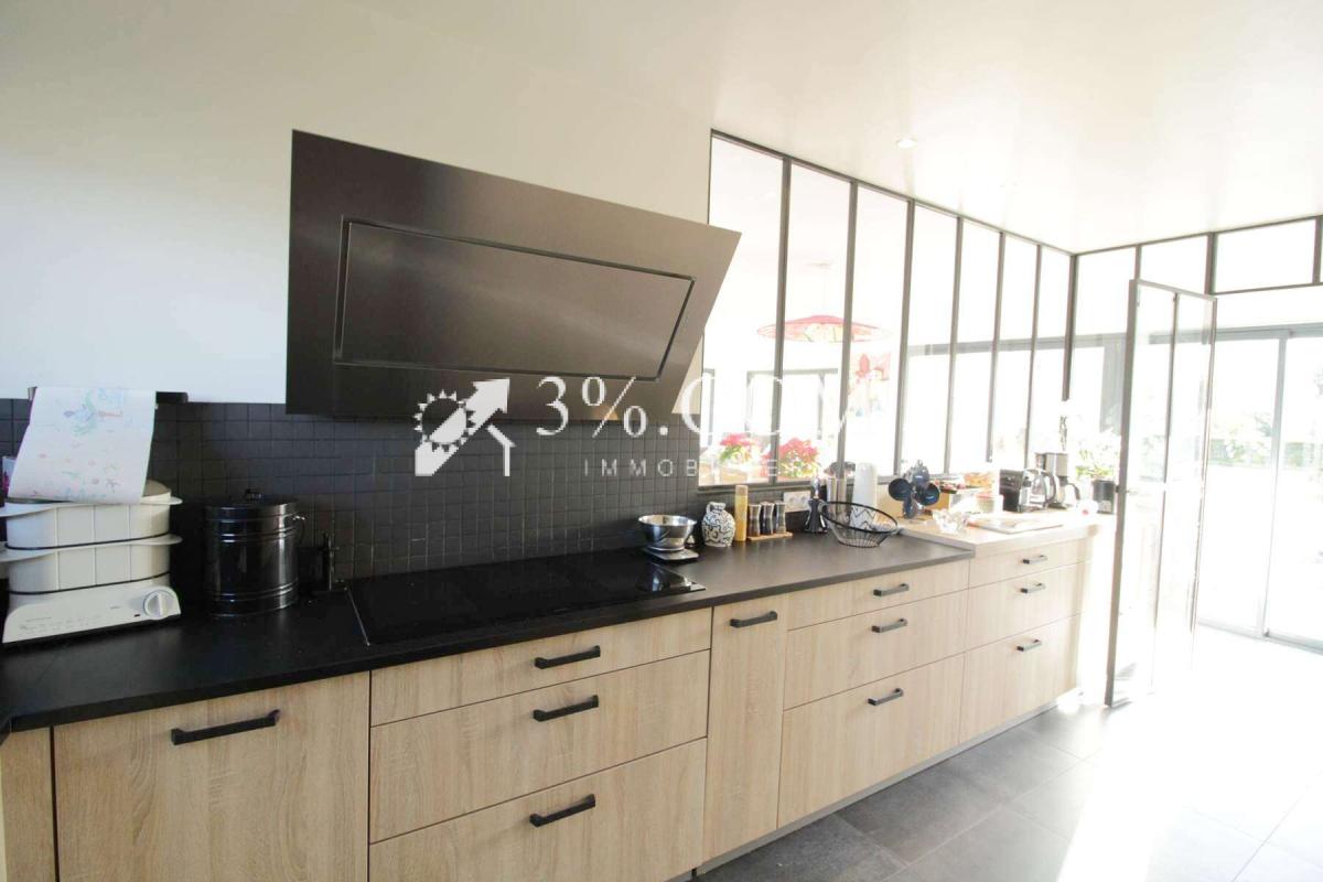 Cuisine aménagée et équipée : Une cuisine moderne et fonctionnelle, agrémentée d'une verrière qui apporte une touche d'élégance et de luminosité.