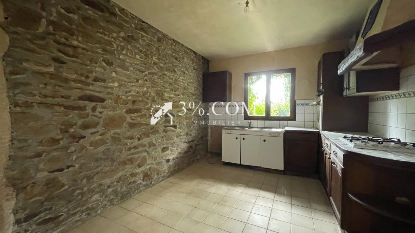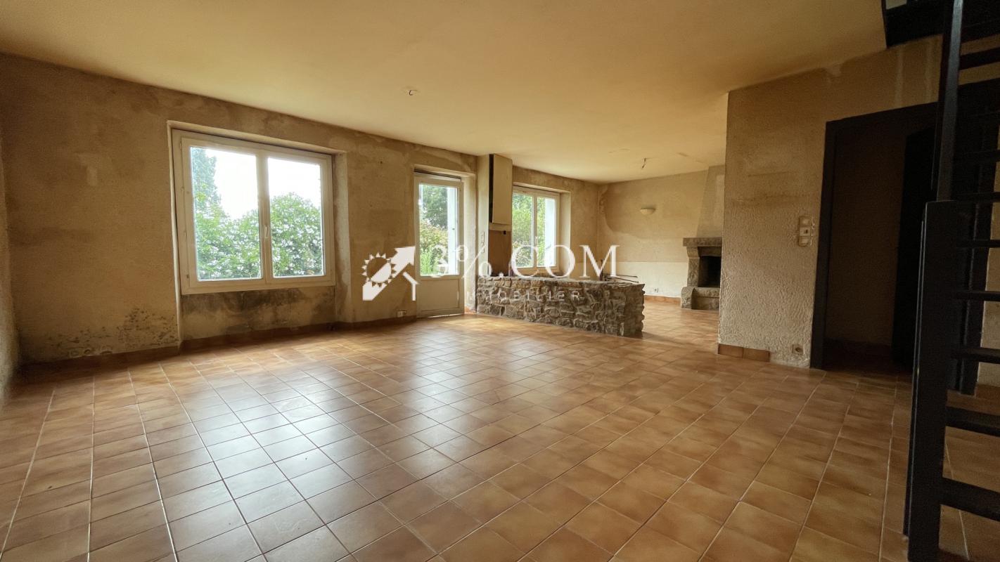 La maison se compose d'une grande pièce principale de 45 m2 avec cheminée , une cuisine de 13m2, arrière cuisine, wc et garage (possibilité de faire une suite parentale au rez-de-chaussée.