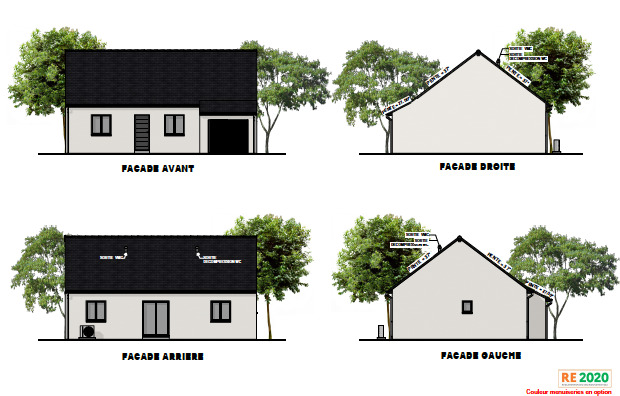 Exemple de maison à bâtir aux dernières normes RE 2025 d'une superficie de 66 m² sur une terrain de 400m² suitée sur la commune de PLOEREN