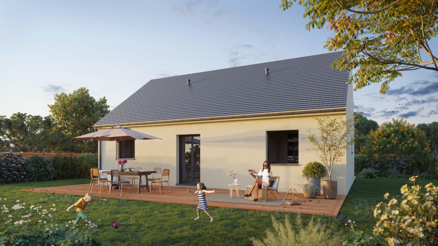 Exemple de maison à bâtir aux dernières normes RE 2025 d'une superficie de 64 m² sur un terrain de 450m² suitée sur la commune de LIMERZEL.