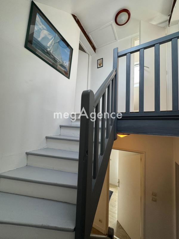 À l'étage, une grande chambre avec placard propose un bel espace de rangement, accompagnée d'une salle d'eau et d'un WC. Un palier ouvert sur le niveau inférieur crée une agréable sensation de volume et de luminosité. Il peut facilement accueillir un coin lecture, un bureau ou un espace détente selon vos envies.