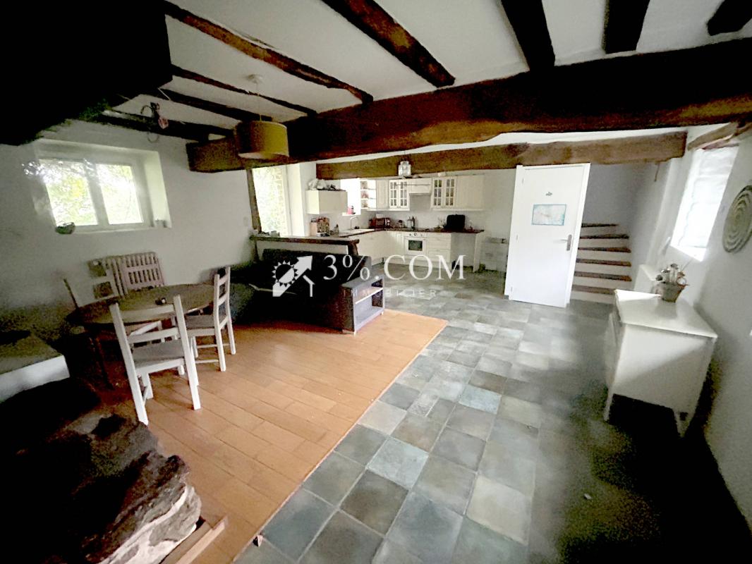 NIVILLAC, en impasse et à proximité du bourg de ses commodités et de l'axe Nantes / Vannes, Laurent ABSIN et Raphaël BAHOLET du réseau 3%.COM IMMOBILIER, vous proposent en EXCLUSIVITÉ cette charmante chaumière Bretonne de 80 m2 env., mitoyenne d'un côté, à rénover, comprenant une entrée avec placard, un salon séjour ouvert sur une cuisine équipée et aménagée avec possibilité de mettre une poêle et une buanderie et un WC. L'étage accueille, un grand palier, deux chambres et une salle de bain avec WC. Un agréable terrain de 918 m2 avec un abri de jardin, complète cette propriété. Grenier pour stockage.