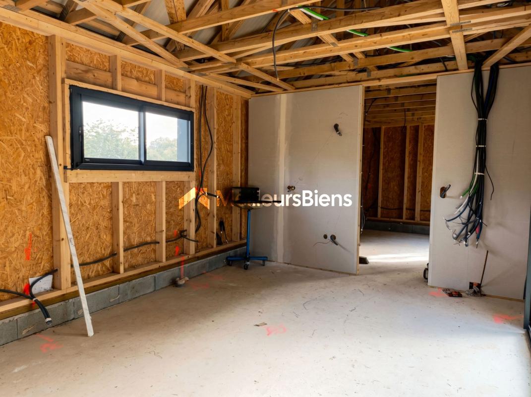 La structure est récente, avec une toiture en bac acier et des menuiseries aluminium double vitrage équipées de volets roulants électriques (pose à finaliser).