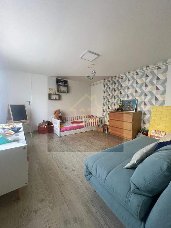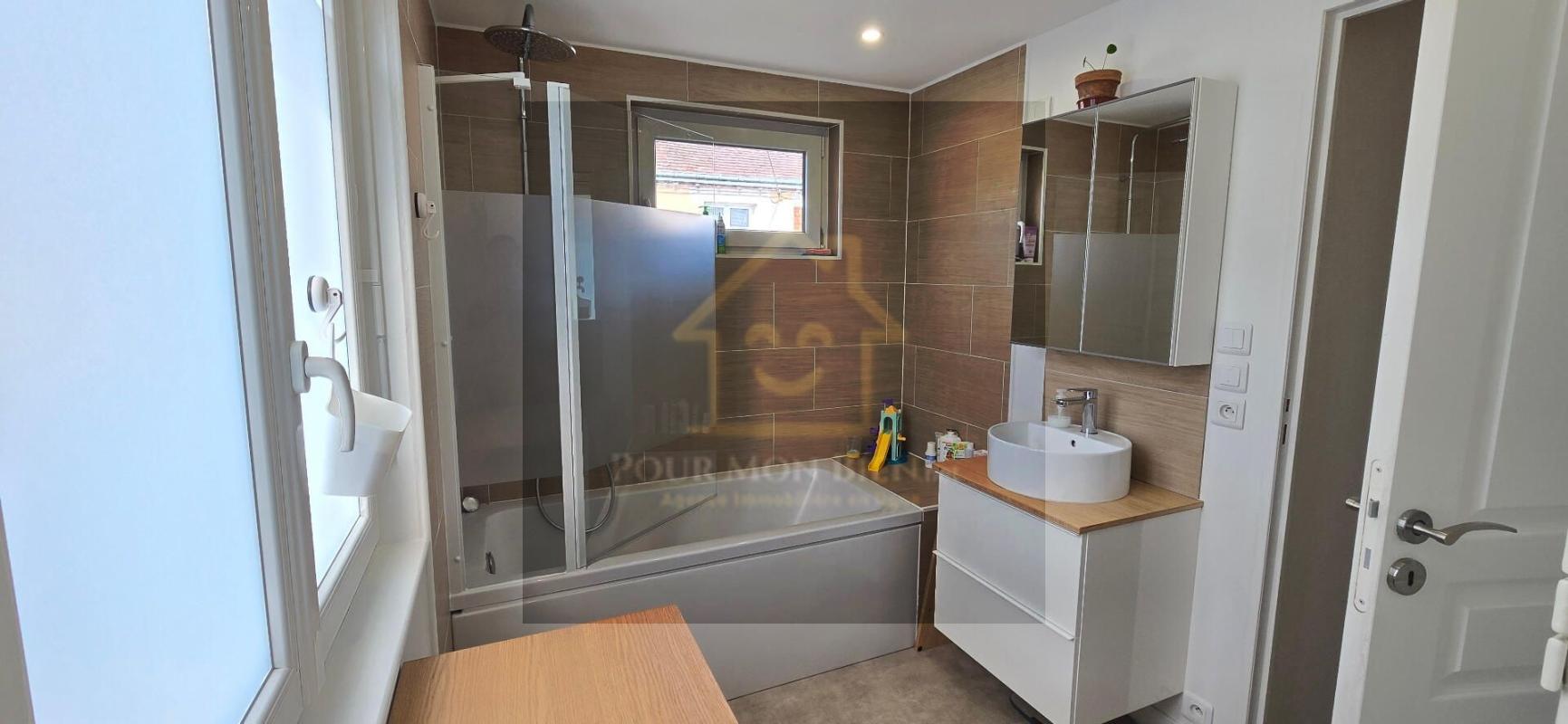 Sur ce même niveau, une chambre confortable ainsi qu'une salle de bain moderne, entièrement refaite avec baignoire et WC, complètent l'étage. En rez-de-chaussée, un dégagement mène à un cabinet de toilette, une buanderie/chaufferie propre et isolée, ainsi qu'une grande pièce faisant office de seconde chambre, idéale pour un enfant, un bureau ou un espace polyvalent.