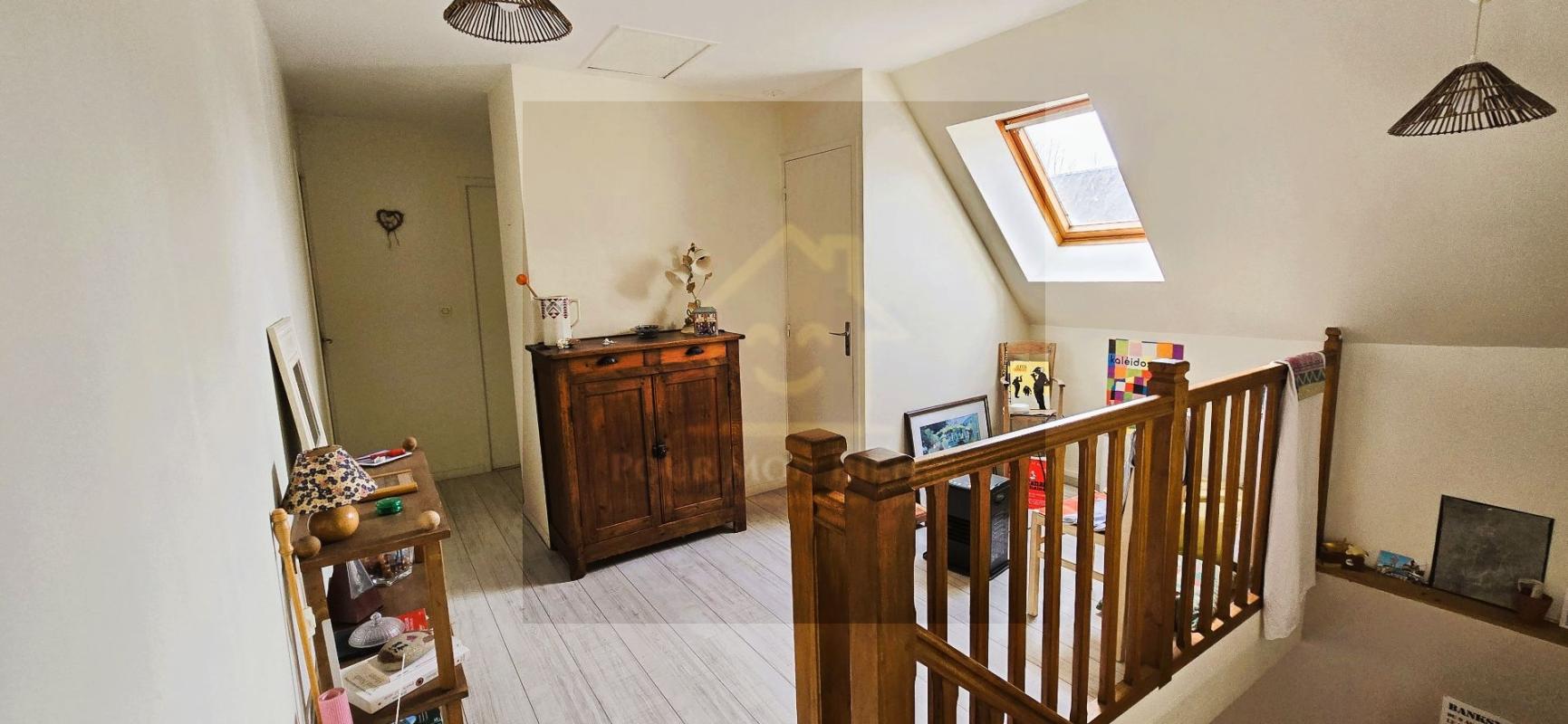 Cette maison de 6 pièces se compose d'une entrée, séjour/salon avec cheminée, cuisine séparée, WC et belle chambre. A l'étage, un palier dessert un dégagement, trois chambres, salle de bains avec baignoire et douche et WC séparé.