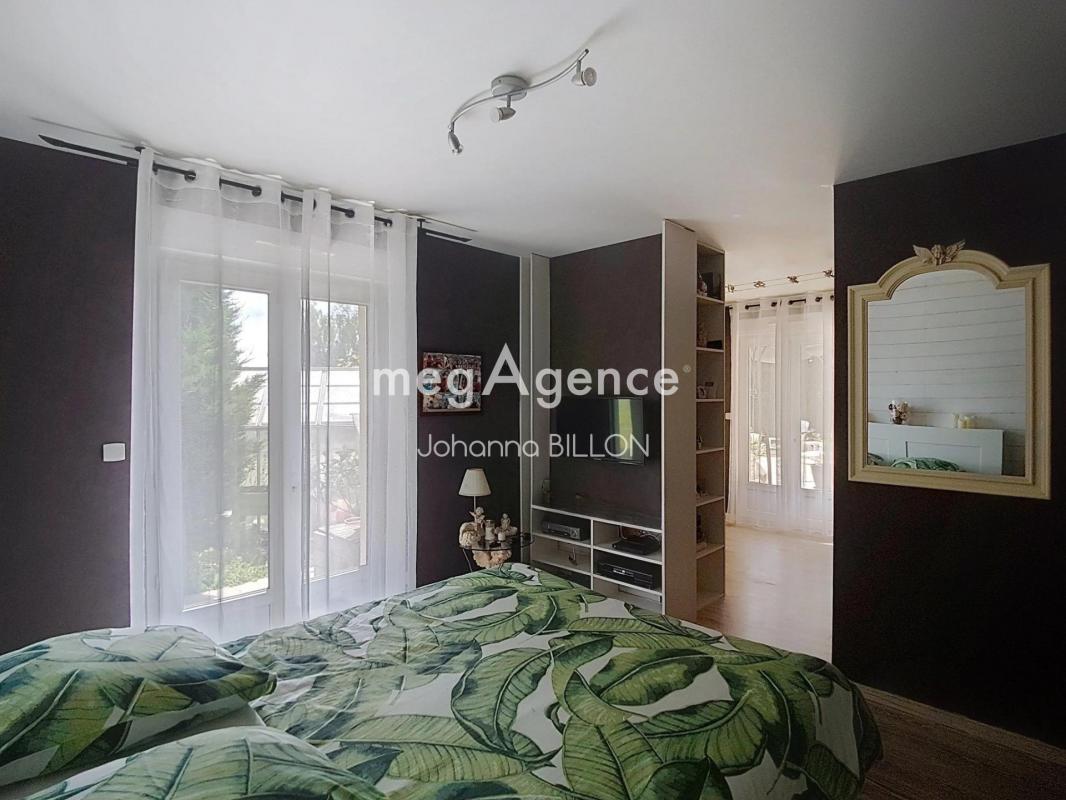 Située dans un secteur résidentiel, proche du centre-ville et au calme, elle est implantée sur une parcelle arborée de 960 m². Elle offre de beaux volumes avec une entrée de plus de 7 m² avec placard, qui s'ouvre sur une pièce de vie traversante de plus de 50 m² avec insert, donnant accès à une véranda de 17,30 m² et à une cuisine américaine aménagée équipée ouverte. Un cellier-buanderie y est attenant, ainsi qu'un WC indépendant. Un couloir dessert la partie nuit, composée de deux suites parentales de 16,39 m² et 25,92 m², l'une avec salle d'eau privative, l'autre avec pièce dressing et salle de bains comprenant baignoire et douche. Il y a également un second WC séparé et un bureau. À l'étage, un palier dessert deux chambres supplémentaires et une salle de bains avec WC.