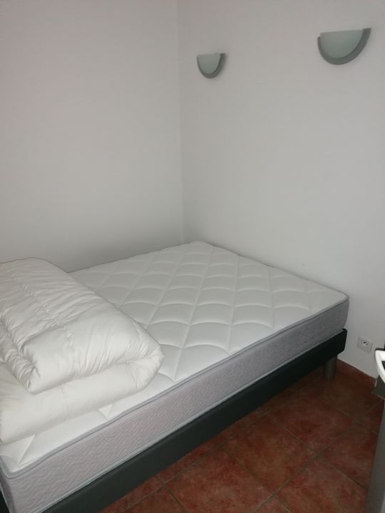 Location appartement F2 meublé situé à Bastia, rue César Campinchi, 35m², dernier étage (ascenseur prévu), parfait état, lumineux, composé d'une pièce à vivre avec canapé et TV, d'une cuisine équipée séparée, d'une chambre avec rangement et literie neuve et d'une salle de douche, doubles-vitrages, balcon avec vue sur toits et mer, proche toutes commodités.