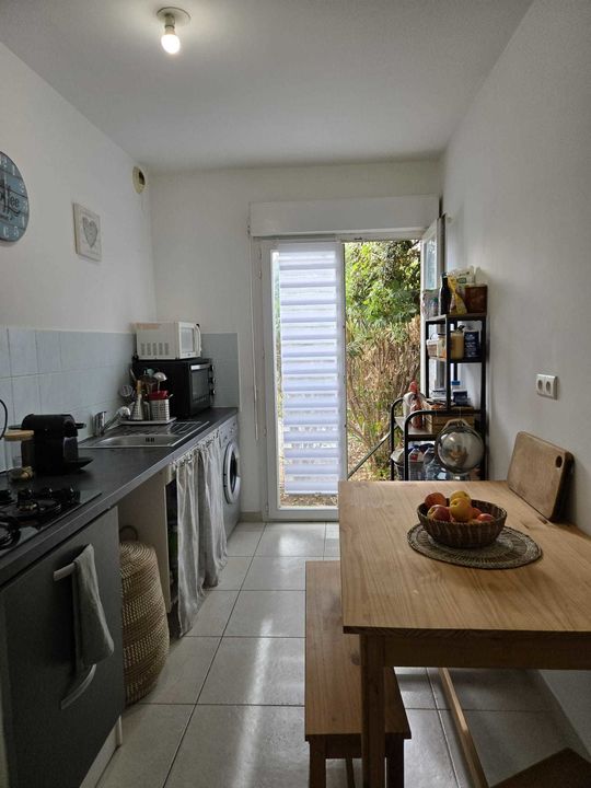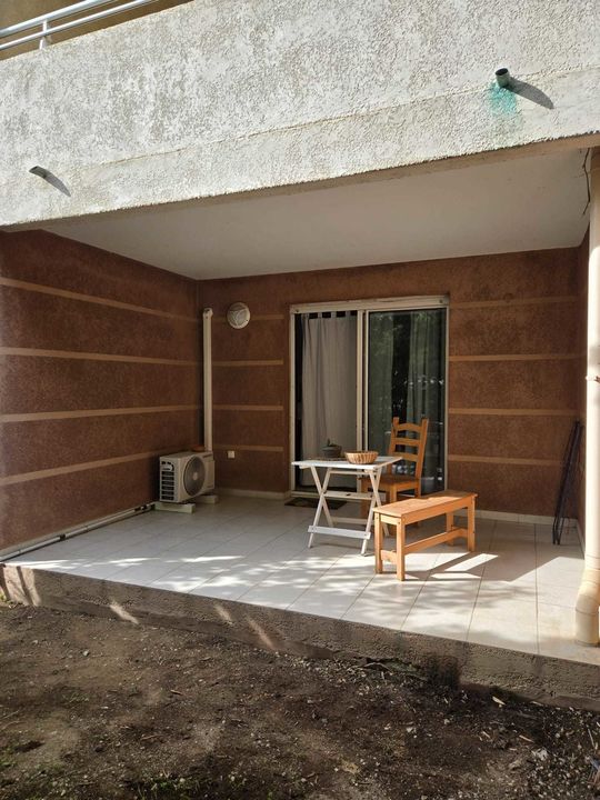 Location appartement F2 meublé situé à Lucciana (20mn sud Bastia), 50m² en rez-de-jardin d'une petite résidence, composé d'une cuisine équipée séparée, d'une pièce à vivre avec canapé d'angle, d'une chambre avec rangement et d'une salle de bain, petit espace bureau ou rangement, doubles-vitrages, climatisation, terrasse couverte, jardinet, parking, proche toutes commodités.