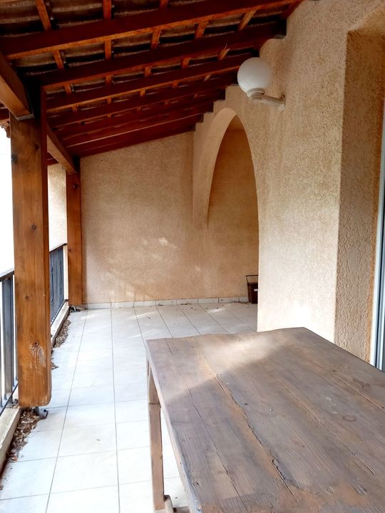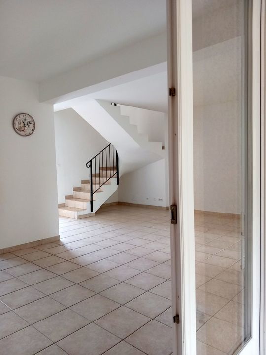 Location T4 vide situé sur les hauteurs de Bastia (Ville di Pietrabugno), 90m² en duplex, mitoyen avec entrée indépendante, composé au rez-de-chaussée d'une cuisine aménagée (plaque, hotte), d'un séjour et d'une terrasse couverte de 20m², au premier étage de trois chambres (une grande avec rangement, deux petites avec balcons) et d'une salle de bain, doubles vitrages, climatisation (salle + 1 chambre), espace extérieur commun avec deux places de parking, desserte à 1km.