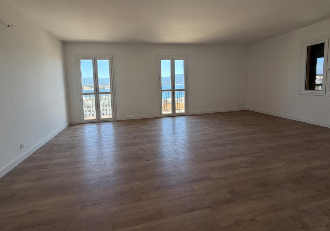 Immo de corse AIACCIU vous propose à la location ce magnifique F4 au 5ème étage avec ascenseur d'une superficie de 138.00 m2 avec vue imprenable sur la baie d'Ajaccio, entièrement climatisé et traversant il se compose d'une entrée, un séjour de 35.00 m2 ouvrant sur un balcon, une chambre, une salle de douches avec WC, une chambre, un dressing, un dégagement, un WC indépendant, une suite parentale avec salle de bains privative et dressing donnant sur un balcon, une cuisine de 22.32 m2 aménagée et semi équipée d'une plaque et d'une hotte.