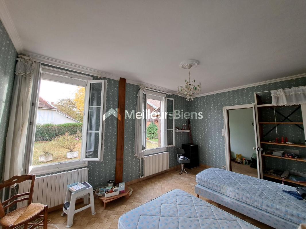 La maison est édifiée sur 1 étage aménageable, composée d'une vaste entrée, 2 grandes chambres avec placards, salle d'eau avec wc, cuisine aménagée bois ouverte sur séjour avec cheminée. Elle bénéficie d'un revêtement de sol principal en carrelage, facile d'entretien et adapté à la vie familiale. La toiture en tuiles naturelles apporte du charme et une bonne durabilité à la bâtisse. Le bien est raccordé au tout-à-l'égout et équipé d'un système de chauffage géothermique neuf, gage de confort en toute saison. Cave sous l'ensemble. Dépendances non attenantes.