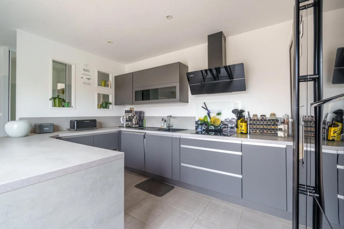 Dès l'entrée, on découvre de beaux volumes baignés de lumière. L'espace de vie s'articule autour d'un salon convivial ouvert sur une cuisine récente, aménagée et équipée, pensée pour concilier esthétique et fonctionnalité. De larges baies vitrées prolongent naturellement la pièce principale vers la terrasse et la piscine, créant un véritable espace de réception aux beaux jours. La maison propose plusieurs chambres confortables adaptées à une vie de famille, une salle de bains avec baignoire balnéo ainsi qu'une buanderie indépendante qui facilite l'organisation du quotidien.