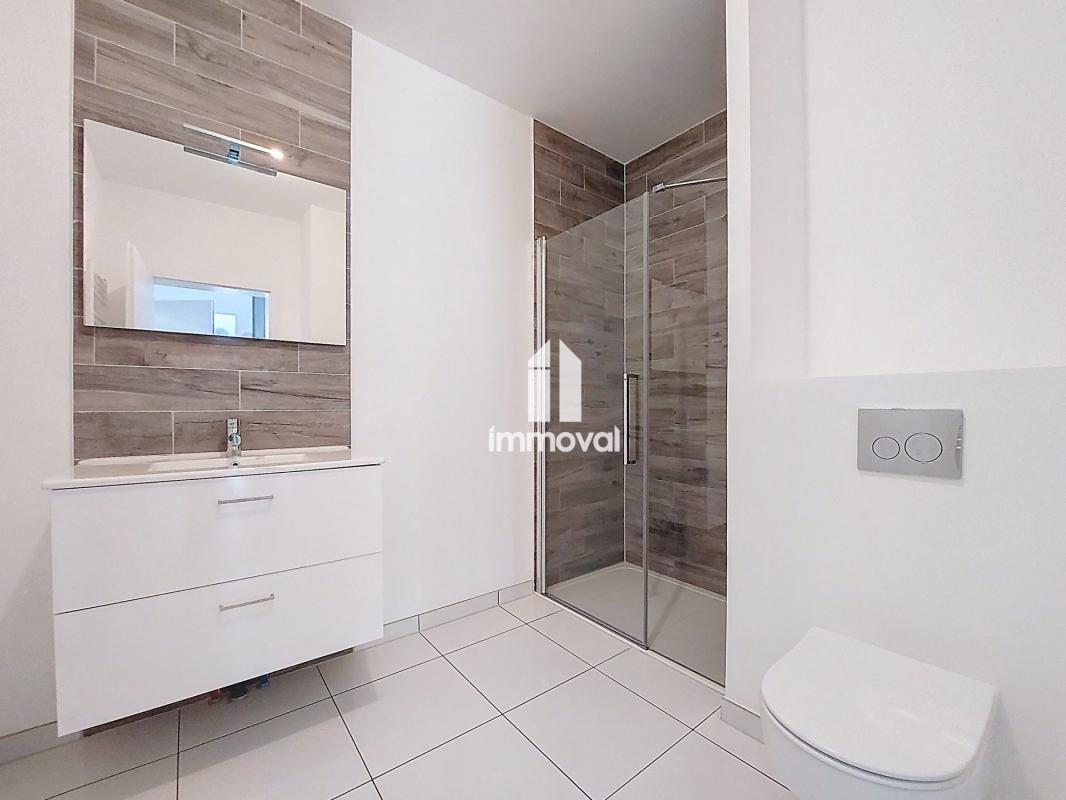 IMMOVAL vous propose, GANZAU, rue du Grand Capricorne, un appartement neuf 2 pces de 40.50m² avec parking privatif. En rdc, il se compose d'une entrée, d'un séjour avec sa cuisine équipée ouverte, cellier et beau balcon de 13.60m² sur l'eau, d'une chambre, et d'une salle d'eau avec toilette.