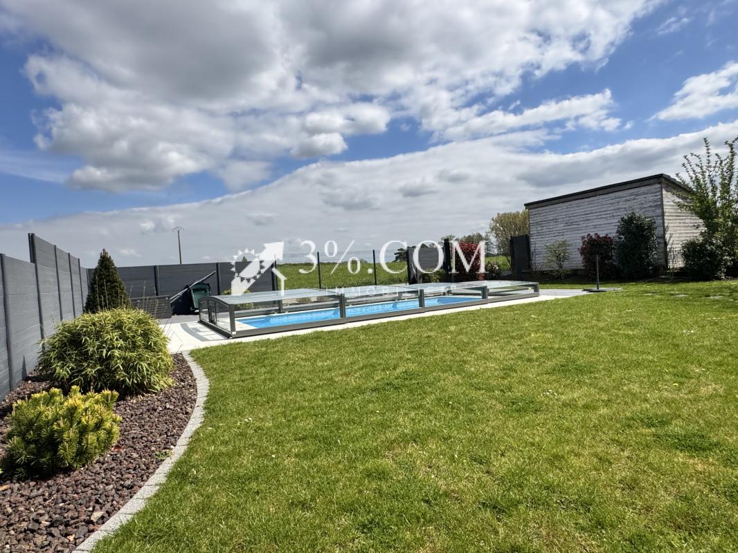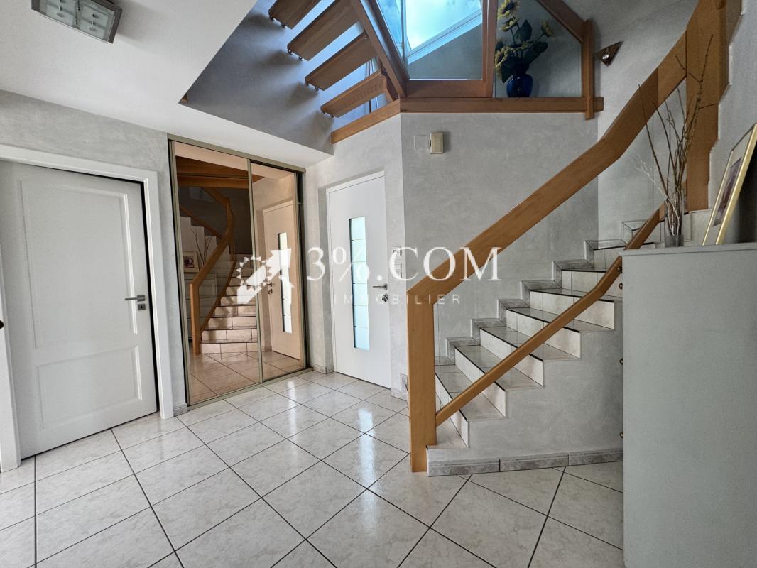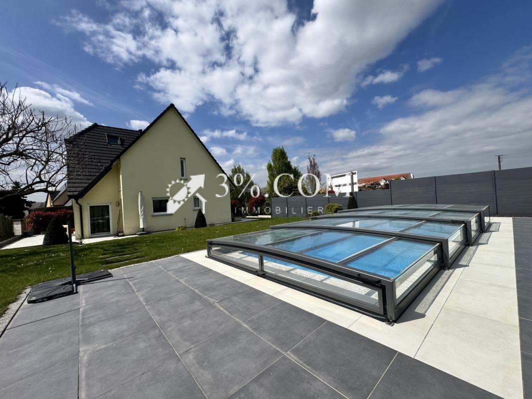3%.COM - Nouveauté en EXCLUSIVITE A PROXIMITE de Brumath, venez découvrir cette belle maison contemporaine de 163m2 ( 199m2 au sol) avec un jardin aménagé autour d'une piscine récente.
