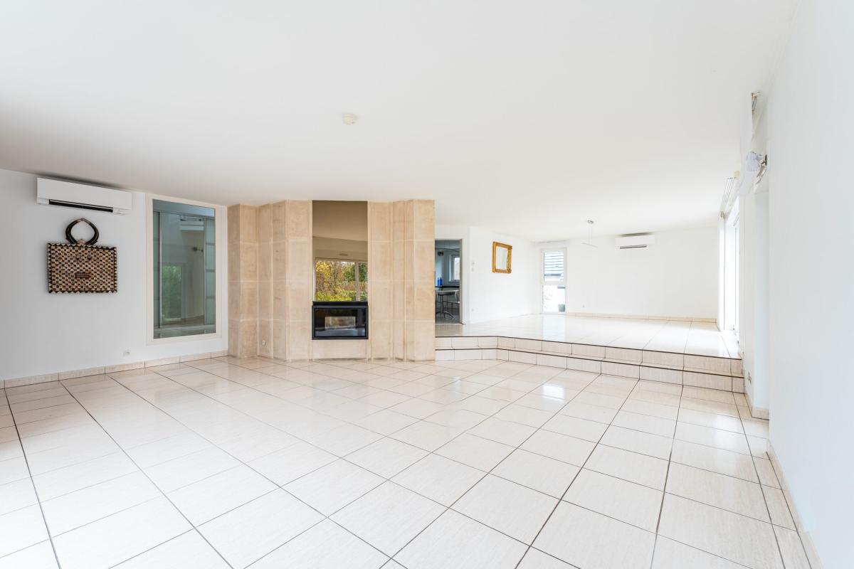 La villa comprend une entrée avec placard, un double séjour avec cheminée donnant accès sur la terrasse ainsi que le jardin et une cuisine indépendante.