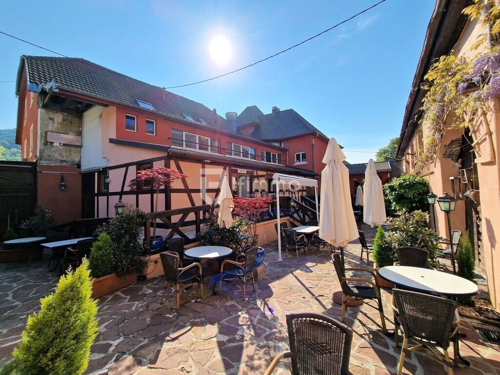 Aménagement : hall d'accueil, trois salles de restauration, cuisine, grenier, buanderie, caveau, terrasse agréable et cour.