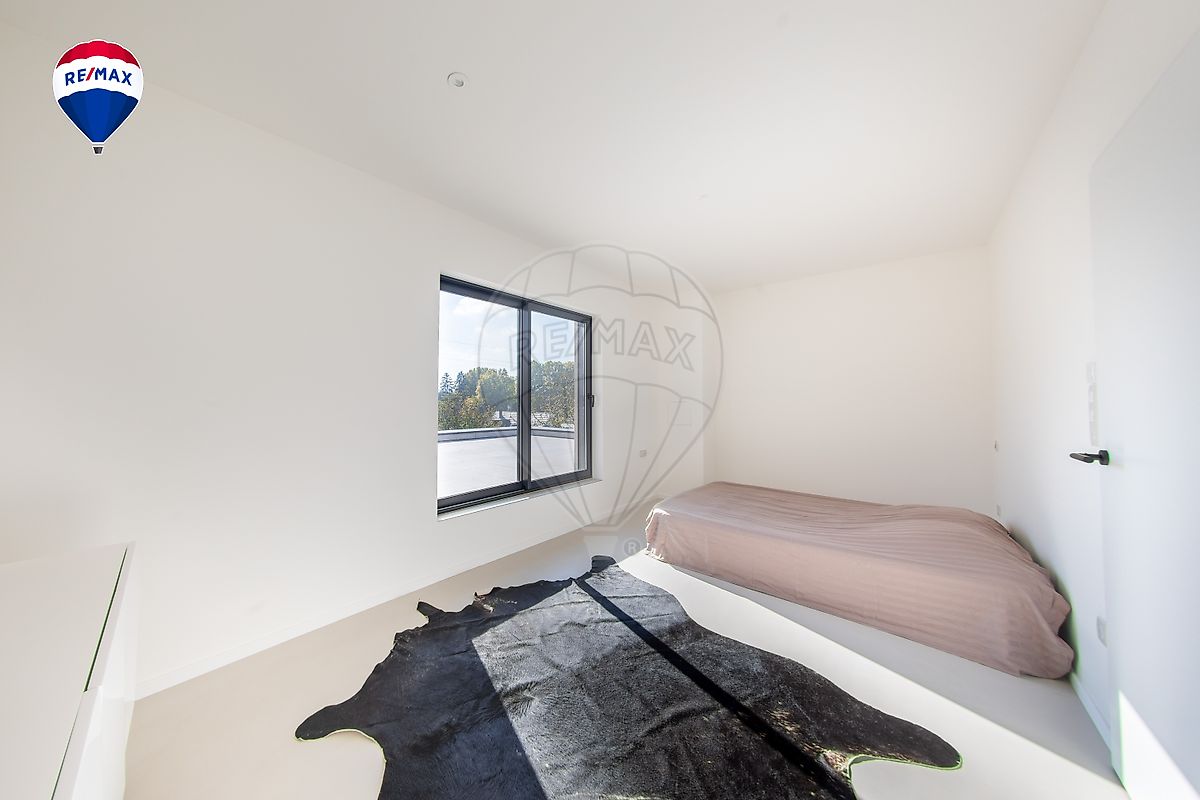 La villa est conçue en étage inversé afin de valoriser pleinement la vue et la lumière. À l'étage, deux chambres de 15m2 avec accès direct à une vaste terrasse panoramique offrent un cadre intime et apaisant. Le béton ciré y prolonge l'élégance des matériaux jusque dans les espaces de nuit. Une salle d'eau contemporaine et des rangements sur mesure signés Agencement Wanner complètent ce niveau avec raffinement.