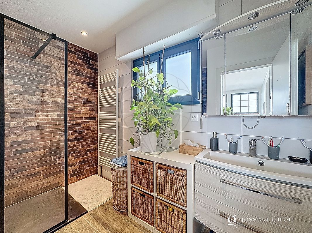 Au rez-de-chaussée, la pièce de vie entièrement ouverte accueille un bel espace séjour avec cuisine contemporaine, pensé pour la convivialité. Une chambre et une salle d'eau permettent de profiter d'une vie de plain-pied, un véritable atout en termes de confort et de praticité.