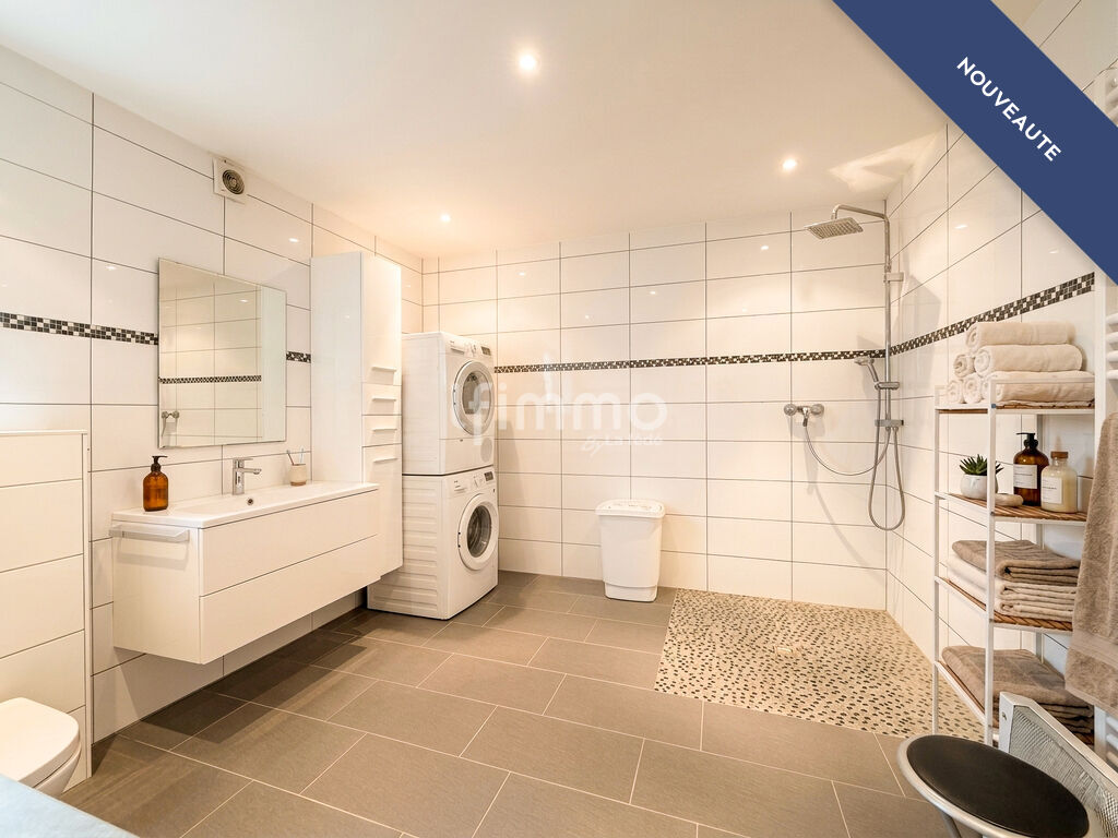 Une salle d'eau et douche à l'italienne, complétée par une buanderie fonctionnelle.