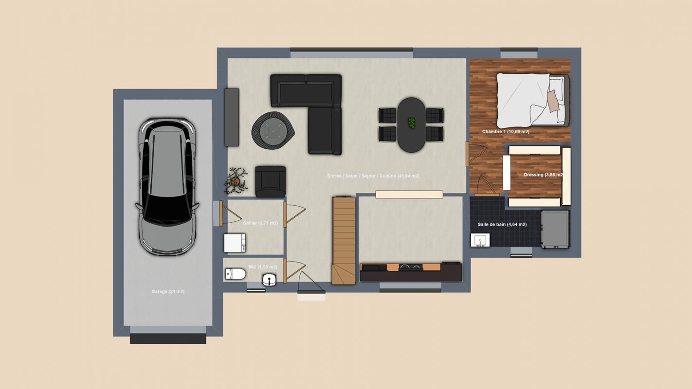 Garanties et assurances obligatoires incluses. Prix indicatif hors peintures, hors options, hors raccordements, hors branchements et hors frais de notaire. Terrain sélectionné et vu pour vous sous réserve de disponibilité et au prix indiqué par notre partenaire foncier. Visuels non contractuels.