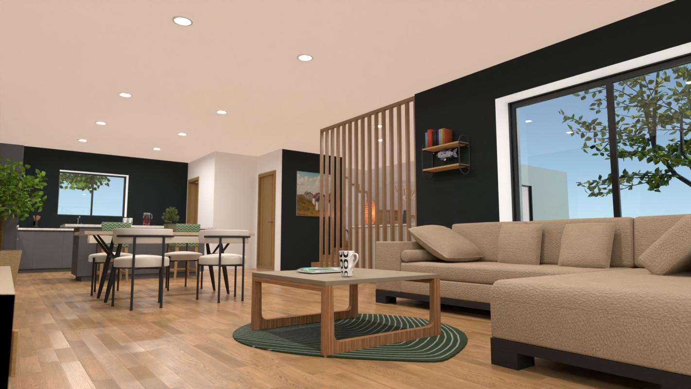 Des jeux de toitures résulte une résidence de 145 m² tout en raffinement. Peu de cloison pour les espaces de jour: la volonté d'appréhender librement les différentes surfaces est ainsi pleinement assumée. En plus de sa chambre parentale en rez-de-chaussée, le modèle Dexithée fait la part belle à l'espace de nuit à l'étage avec 3 belles chambres et de nombreux rangements.