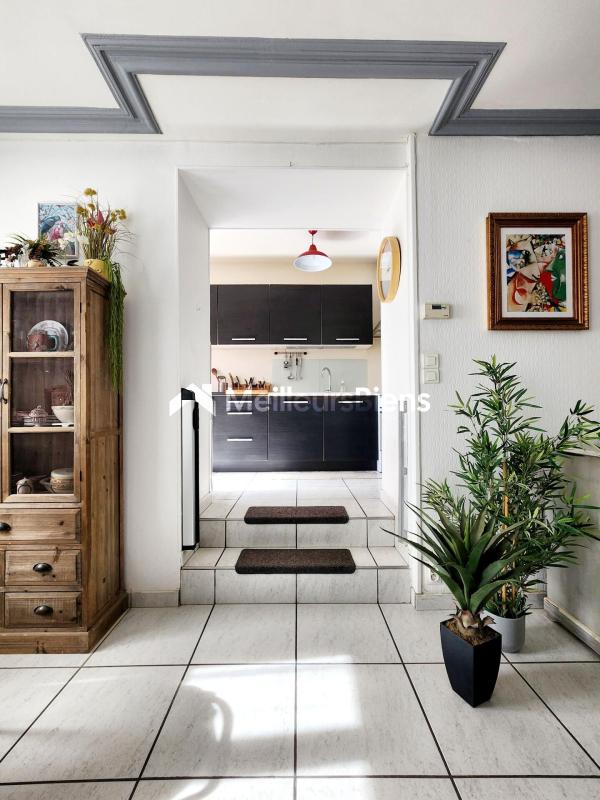 # RDC : entrée, cuisine ouverte sur un séjour lumineux , toilettes avec lave main, grand. espace de stockage d'environ 50 m²