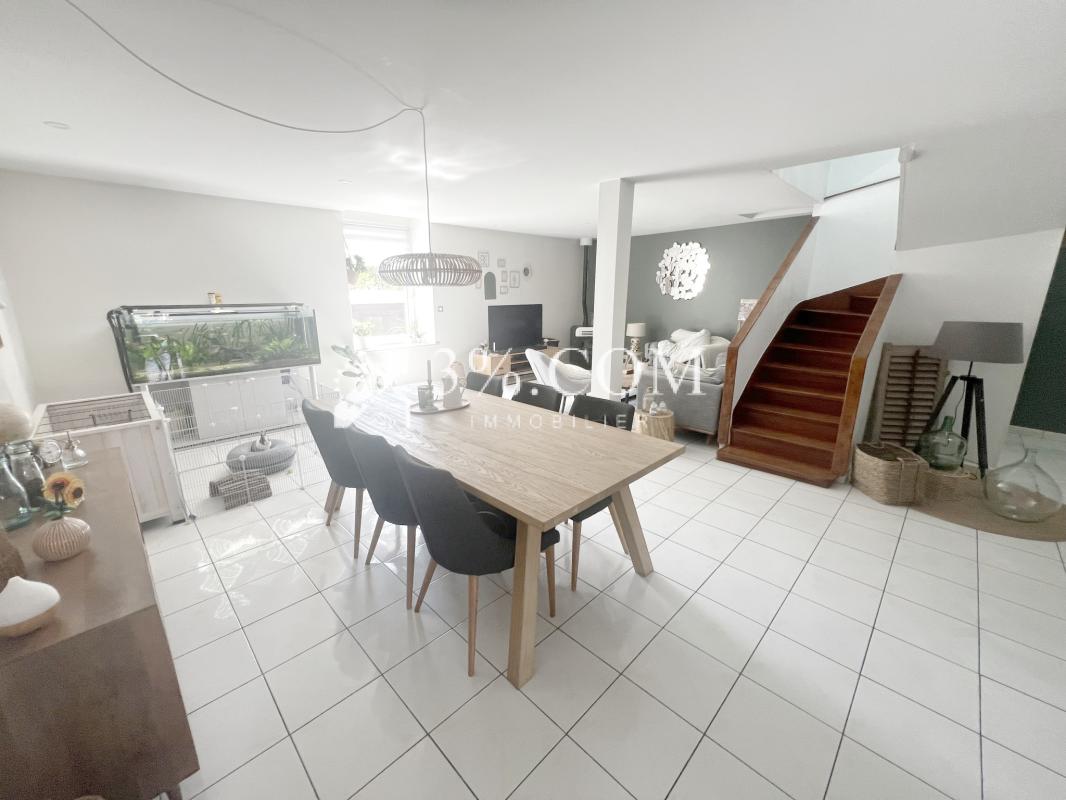 Dès l'entrée, vous découvrez une superbe pièce de vie de 65 m2, baignée de lumière, offrant un espace de réception convivial avec salon, salle à manger et cuisine ouverte.équipé d'un Poêle a pellets