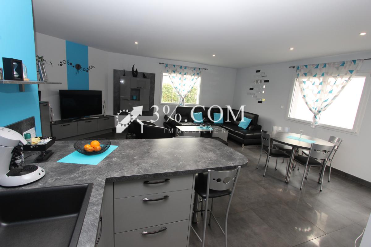 La maison se compose d'une spacieuse et lumineuse pièce de vie, avec salon-séjour ouvert sur la cuisine, créant un bel espace convivial.