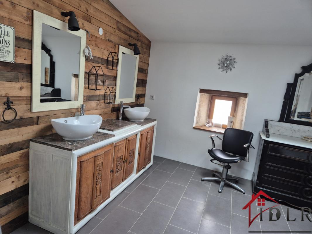 A l'étage : un vaste palier avec coin bureau, 3 belles chambres, une salle de bains généreuse avec baignoire + douche + double vasques, une bibliothèque ou salle de jeux et des wc séparés.