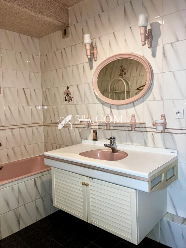 - Salle de bain avec baignoire, vasque et meuble de rangement