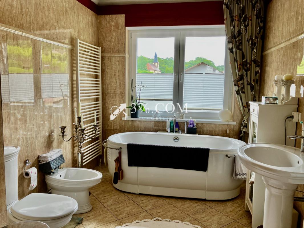 - Salle de bain (10 m2) entièrement carrelée, avec baignoire, vasque, WC, bidet et sèche-serviettes.