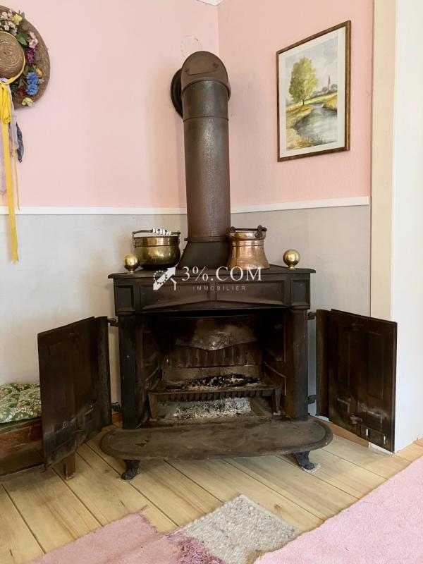 - Salle à manger (18 m2) équipée d'une banquette d'angle, chauffée par un poêle 'GODIN Colonial' (utilisable comme une cheminée avec un foyer ouvert) et par des convecteurs électriques,